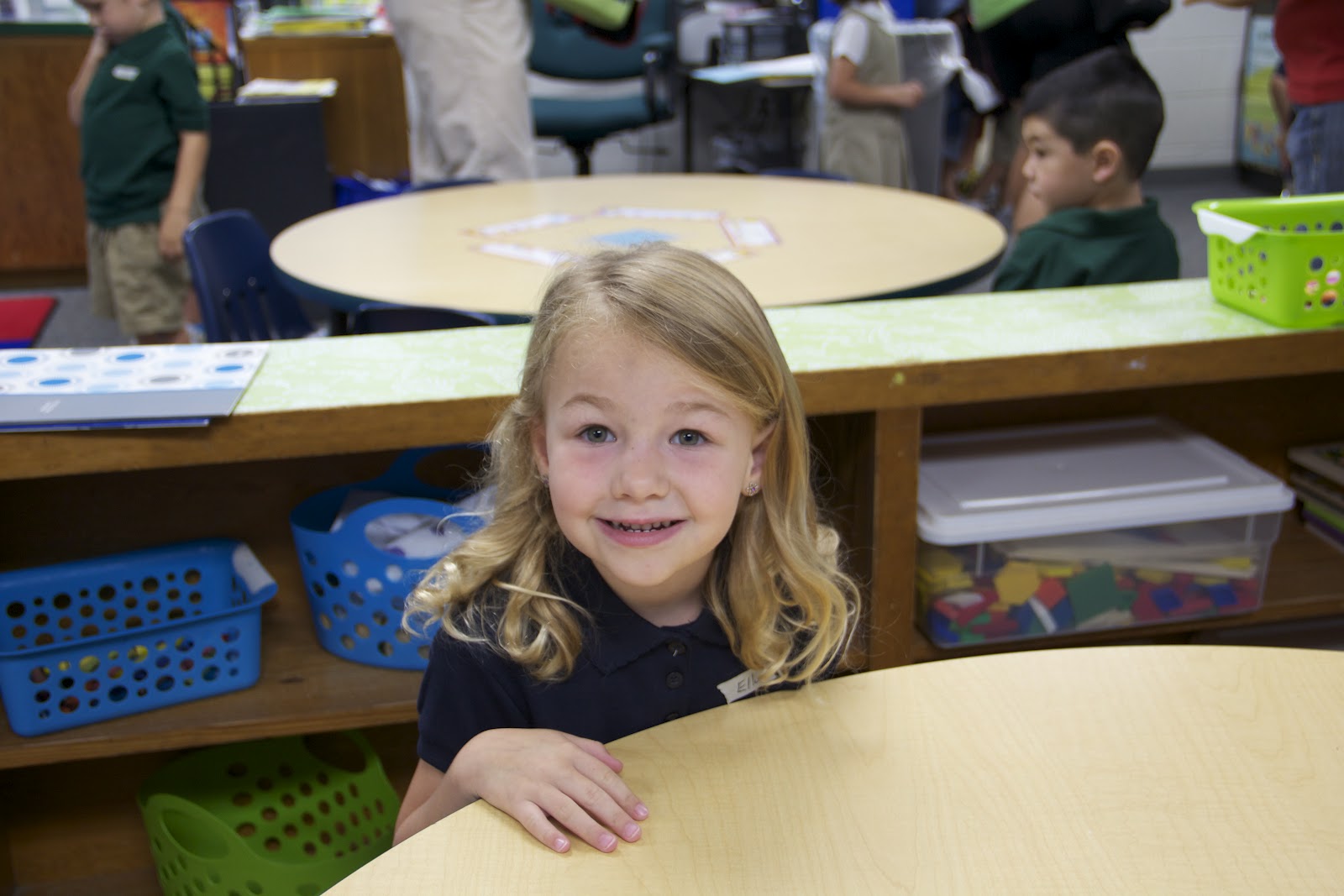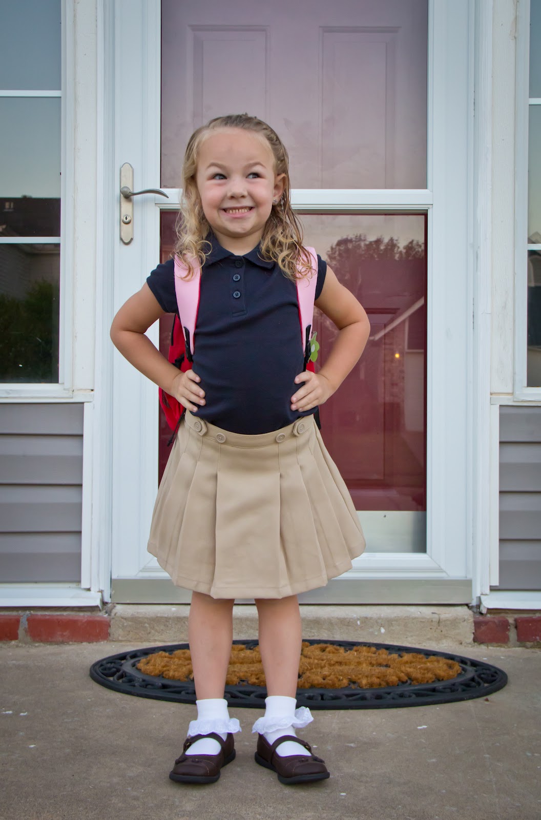 And I feel SO old!  I can't believe that I have a child old enough to be in school!   She started Pre-K last Monday and has LOVED it!  She goes from 7:45 to 10:40 Monday-Friday so it is the perfect amount of time for me to run errands and have some one-on-one time with Kaleb!  The first day was kind of a meet and greet with the teacher and we only were there for about 45 minutes so it was a little anti-climatic.  The teacher had assessments to do the rest of Monday and Tuesday so Wednesday was her first real day of school.  I actually left her there for the first time alone!  I have never done that before with strangers.  I mean, sure she goes to Lifekids at church but Martin and I are always there in the building and my family has watched her a lot when I am gone but never strangers!  It was tough for me to let go and trust that she would be ok.  The what-ifs kept running through my mind- What if she falls and really hurts herself and I'm not there?  What if other kids are mean to her?  What if the teacher doesn't like her?  What if she can't find the bathroom?