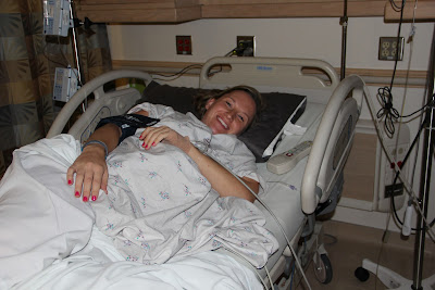 When I was admitted I was a "stretchy" 2 and 50% effaced. After an hour or so I was a 3 and 70% effaced. I continued to dilate 1cm every 2 hours until I was at a 5 and 100% effaced. My sweet nurse kept reassuring me that I was progressing and things were going well although they were going way too slow for me and I was in major pain. After about 6 hours and me being only dilated to a 5 I "caved" and asked for the epidural. The contractions were getting so intense that I was tensing up and starting to dread the start of each one. I know they say that pit contractions are way worse than regular labor contractions so I was happy that I made 6 hours before I asked for the epi. I tried focusing on things, relaxing my face, visualizing the baby moving down and my cervix opening, I tried everything I read in my natural birth preparation but it just got to be too much. My sweet husband was really supportive of me going natural when we were at the hospital. He was rubbing my back and providing counter pressure when the contractions got to be really bad. He was encouraging and told me I didn't need to get the epi if I didn't want to. I think in hindsight that he was using reverse psychology on my because he knew that if he pressured me into an epi I would not get one just to prove that I could do it. He's a smart one that man!! He desperately wanted me to get the epi because he hated seeing me in pain bless his heart but he was so awesome during my defiant stage. My sister Brianna was there with me during the labor and she kept to her corner and didn't say much when the contractions got bad but I knew she wanted to shake me and scream Get the epidural!!! I was at the point where I was shaking and moaning and cussing through them and that is not like me. I was ready to be free of the pain and I can now say that I definitely experienced labor and it hurts! I have a newfound respect for those who gave birth naturally because it is not a fun experience!